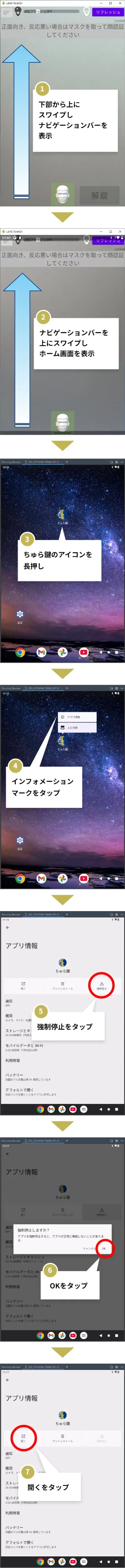 2.1.アプリの再起動操作→ 復帰すれば解決です。復帰しない場合は3.へ。