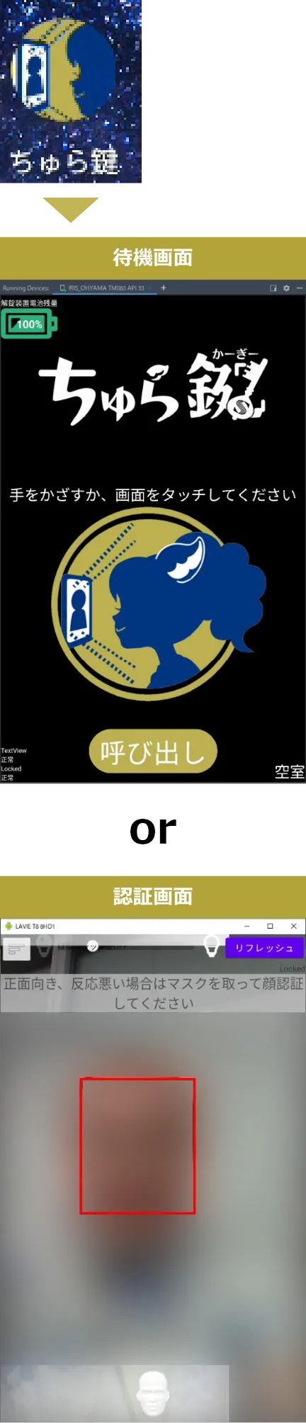 認証画面の案内に「解錠デバイスと接続試行中」や「解錠デバイスが近くにありません」が出ている場合(解錠デバイスと接続ができていない)